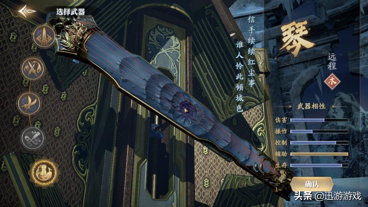 辅助型职业,可放风筝可自奶,组队下本必不可少之职业。五行属性为“木”,任何玩家攻击带有“木”标记的角色时,会获得一定量的回血效果。特有系统“琴韵值”,琴韵值随时间增长,蓄满后释放技能可自动为友方单位施加治疗效果。两套技能“凌波”与“凝弦”,前者以控制为主,更注重风筝敌人,后者可大范围治疗,为队友提供稳定的回血效果。