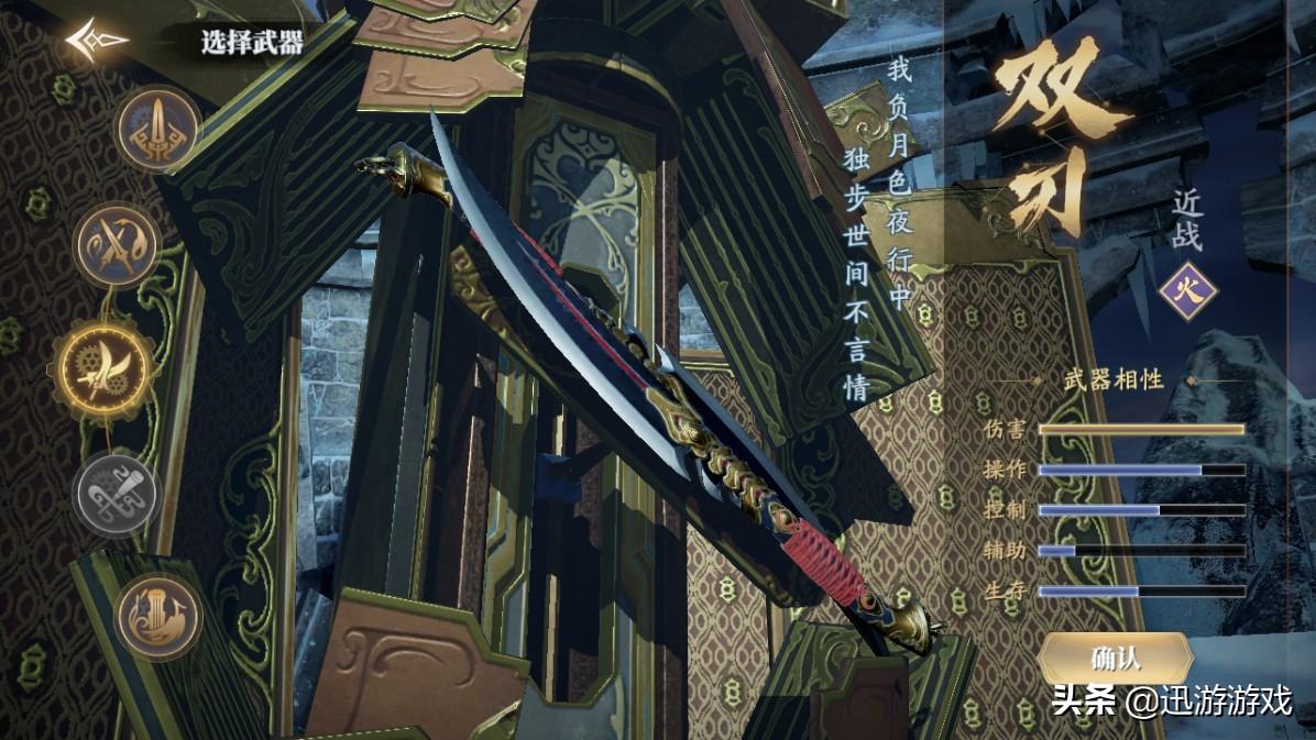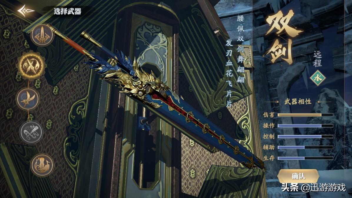 非常均衡的一个职业,推荐给求稳的玩家使用。双剑是远程输出型职业,五行属性为“水”,特色系统“阴阳值”,积满后释放特定技能可为目标挂上水标记,任何玩家攻击该目标都有几率减少技能冷却。两套技能“玄牝”与“归元”,一个适合站桩远程消耗,另一个则适合打游走式的阵地战。