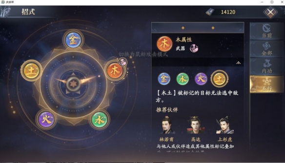 五行属性搭配,琴个人建议带土属性(土木被标记的目标无法选中敌方)或者水属性(水木被标记的目标无法解控)的伙伴,火属性也还可以(火木被标记的目标每次释放技能都会受到一次伤害)
