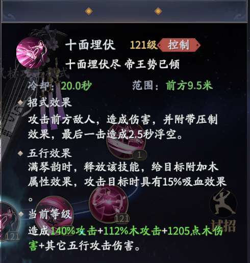 ①琴韵值满了之后十面埋伏+沧海龙吟控住对方,之后接醉渔唱晚,连续输出可以移动并且还能减速对面。