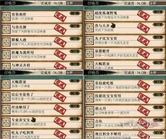 3)召唤兽。平时没事跑去抓抓野生召唤兽,边抓边合成,合成出来一个就可以少抓一样,也可以几个朋友一起抓互相交换。召唤兽装备建议玩比斗的培养培养就有了。其他一些比较难获得神兽功绩,终极技能功绩可以考虑租借完成,这些功绩都相当可观。召唤兽比斗功绩,要把握好每月1号的黄金时间。