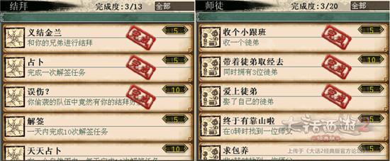 1)师徒、结拜。没事收几个徒弟,帮杀杀剧情,带带升级什么的,总有丰厚的回报,师徒积分,完成师带徒升级的功绩。找三五好友结拜,没事做做结拜任务,抽抽签能完成功绩,还能随机得到一些制药瓶子和物品奖励,何乐不为?(自然周是指周一到周日)。