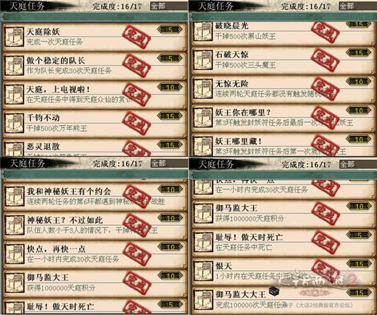 2)天庭任务、鬼王、修罗、降魔宝象。这些都需要靠日常的积累。天庭任务是个刷活力的好地方,别怕雷鸟,带个敏高点的回鬼,炮下敏秒,不会死人,游戏是死的,人是活的,要多动多想。