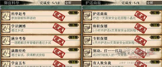 3)御前科举、护送商旅。这些还是有必要完成的。科举的话答案可以问大话精灵,有经验有物品有称谓还有功绩,护送商旅这个选择几个容易的做了。别放过。
