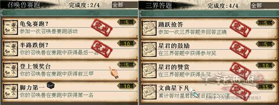 1)召唤兽赛跑、三界答题。晚上没事带着宝宝去参加参加召唤兽赛跑,推荐函不值钱。系统三界答题眼疾手要快,说不定OS就是你的。