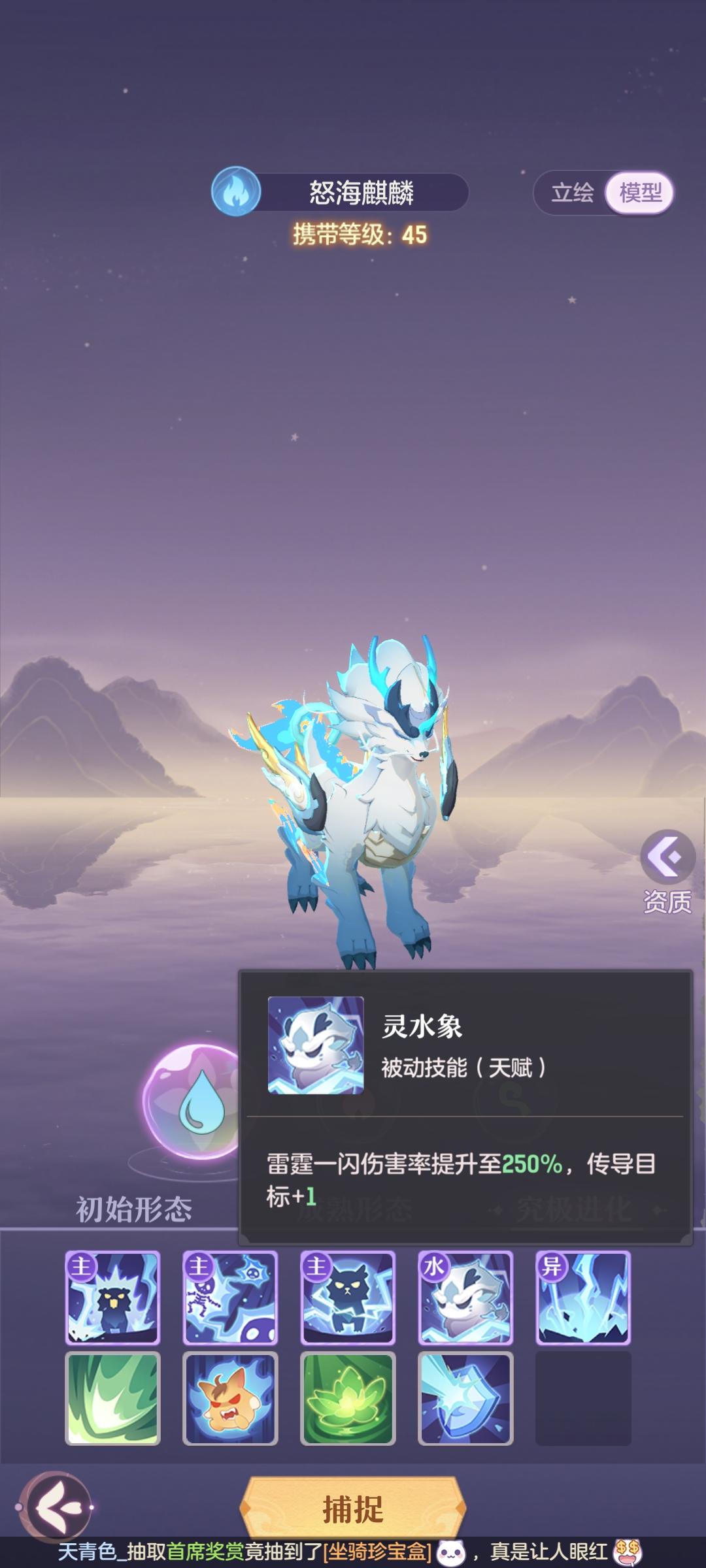 3、之后就要进入45级阶段这个时候不要犹豫听本秋的直接打造两只水系瑞兽!如果是大佬就不需要学习了直接三神兽开局不需要这个攻略。