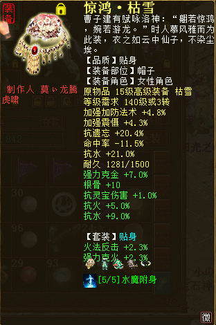 你看你看,还是懒啊,我都没炼化克属性,买来随便练了下就打了玉符。衣服是1200万买的,帽子便宜些,850万,毕竟抗水在任务中用到的不是很多,刷覆海足够。