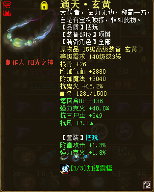 项链的选择也非常容易,抗性无非也是上面那几种,最好是混、鬼火、雷这三种。