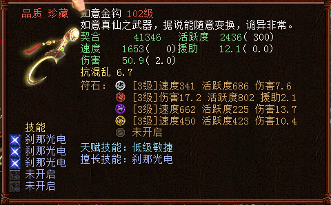 首选14级敏血要求强吸的武器,没有也没关系,16级强吸7以上的也行,男魔自然是双强吸和速,女魔就是吸和盘了。