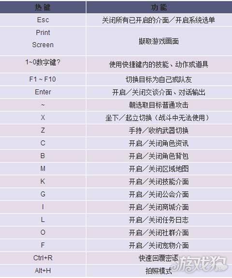 为了让玩家更方便使用键盘按键来操作游戏各种功能和介面,在游戏内将有许多预设的热键供玩家使用。