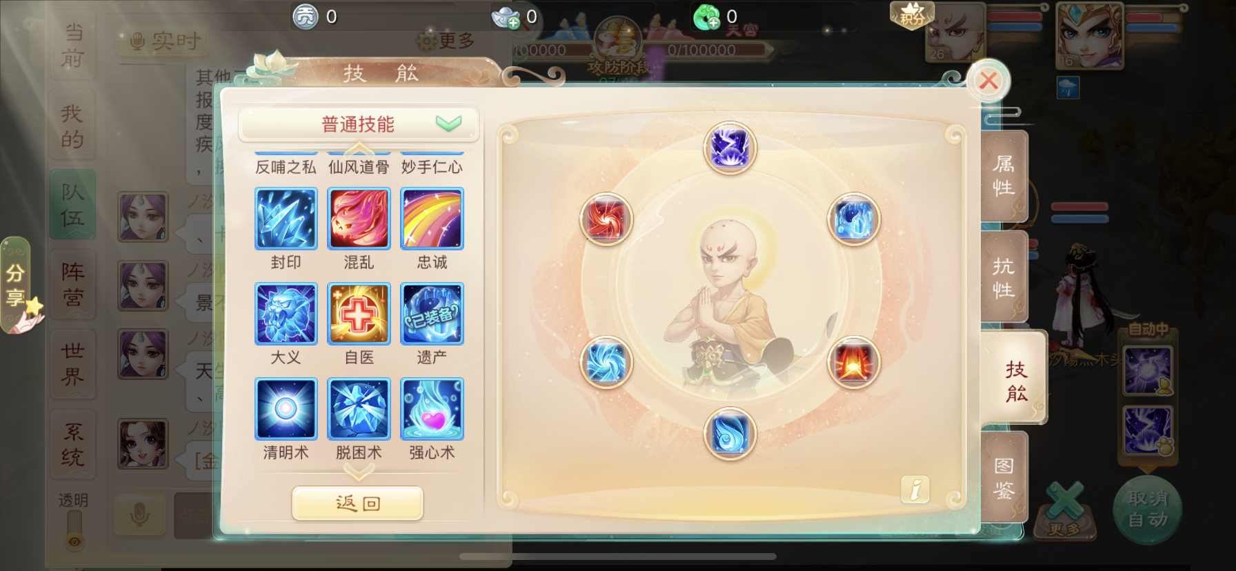 带法马面的仙继续带马面,带山妖的仙换符咒女娲,三个金刚仙全换颜如玉,神兽技能统一改为潮鸣电掣。其他技能看着点一点,别重复就好,比如报复、牵制、小将死、明察等。两个颜如玉火法,一个带青面獠牙烧对面男魔。