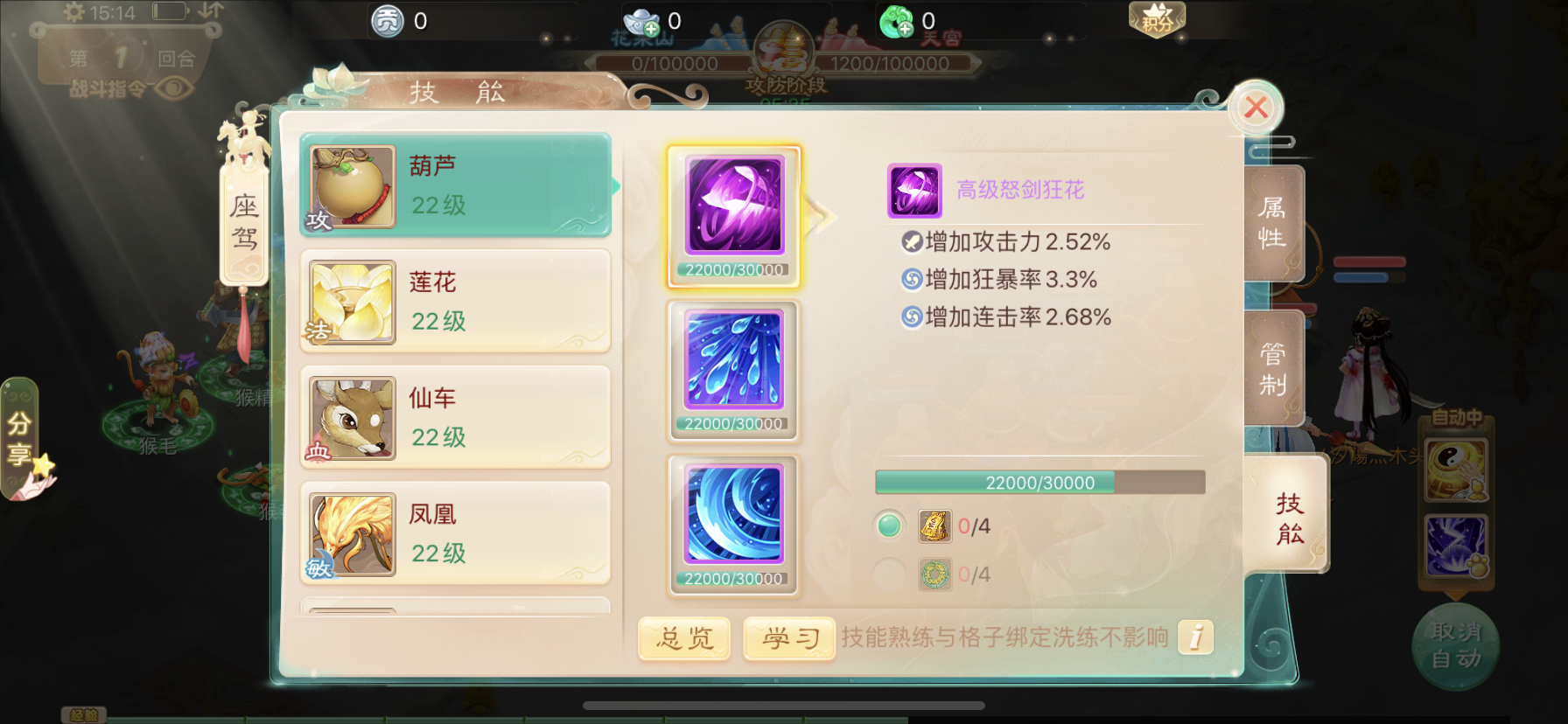 一坐改为怒剑狂花、疾风骤雨、求水流弦,都选高级的,配合金不换使用。二坐改为双高级天雷怒火,三技能选高级蹑影追风,服务于金刚仙。四坐不用改动,三高即可。
