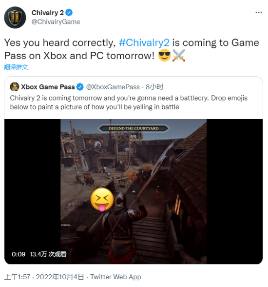 《骑士精神2》官方及Xbox Game Pass宣布,游戏将于明日正式登陆XGP及PGP。