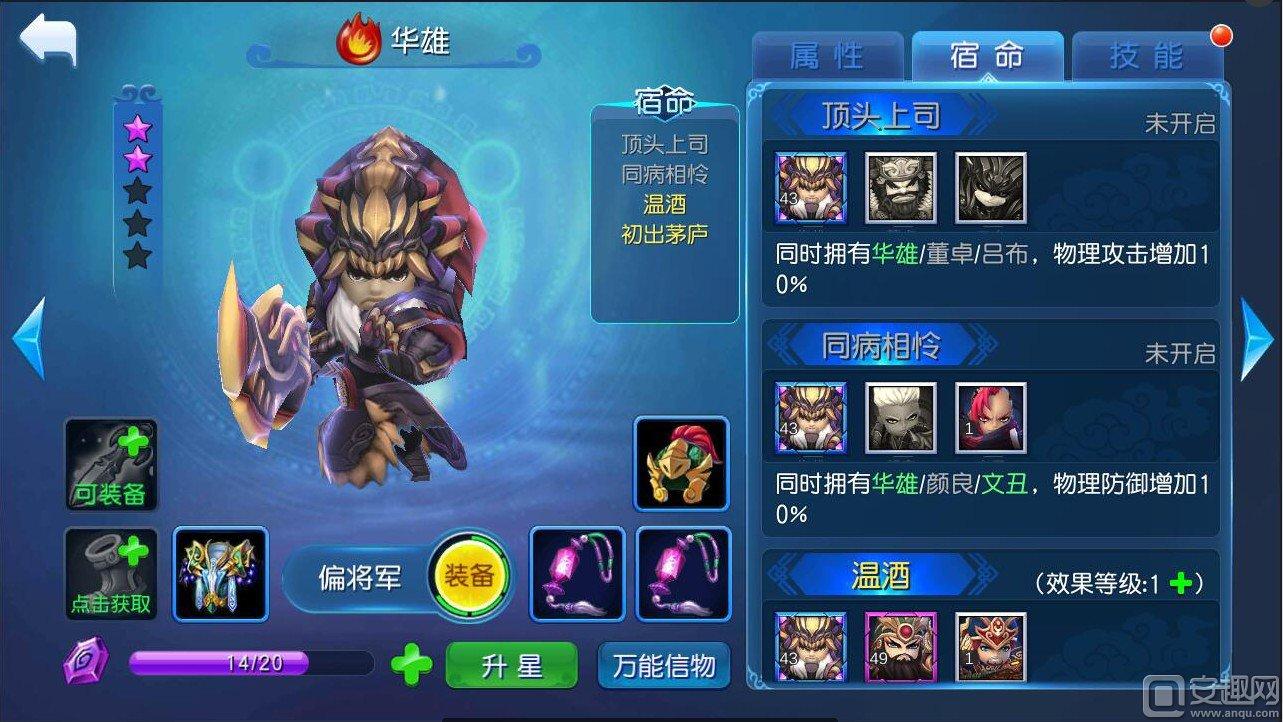 幻灵的武将宿命,只要拥有该武将即可激活。但一定要留意一点,就是宿命是可成长的,即将宿命中的武将培养至紫色官阶,可以获得更大的属性加成;