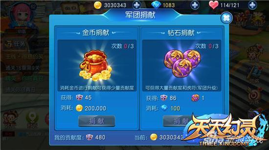 玩家每天都可以在军团中进行金币捐献和钻石捐献,而每天完成三次钻石捐献就能获取86贡献度。积累贡献度就可在军团商店中兑换稀缺资源,而军团大本营升级,商店还会开放更多更高级的物品,所以多多为军团贡献对自身也会大有裨益哦!每天都可以为军团捐献点力量。