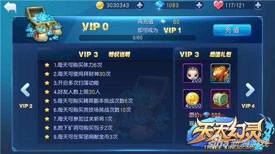 成为VIP后,玩家将拥有购买精英副本挑战次数、竞技场挑战次数等特权,这意味着我们相较于其他玩家会有非常大的提升空间。想要快速获得武将信物,拥有更高的名次,就多多使用特权,消耗钻石进入相应的玩法吧!