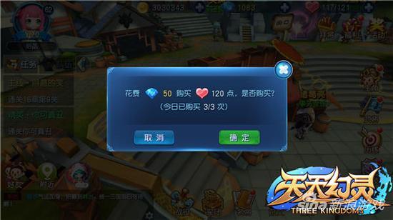 一般玩家每天都有三次体力购买机会,50钻石就可兑换120体力,而在《天天幻灵》中,1体力意味着1经验值。所以,每天一定要消耗掉这些购买次数。另外,VIP玩家还可获得额外的购买次数,有条件的小伙伴也可以选择成为VIP,从而更快地升级。