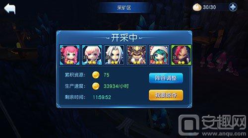 选择挖矿的队伍配置,尽量强力一点哟,强大一点的队伍可以让掠夺者不敢下手