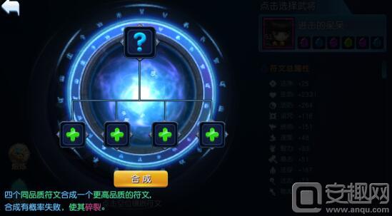 符文合成,消耗4个同品质符文,有概率获得一个更高品质的符文。幻灵这次加大了一般符文的产出,所以努力合成吧,橙色符文不是梦!