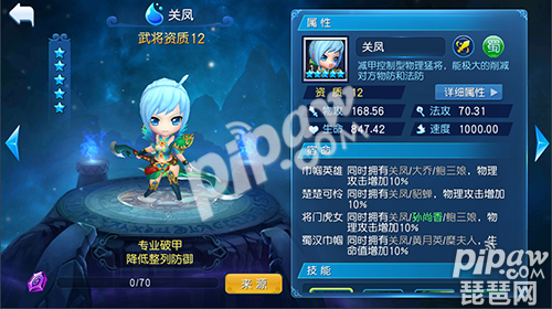 2.楚楚可怜。同时拥有关凤/貂蝉,物理攻击增加10%