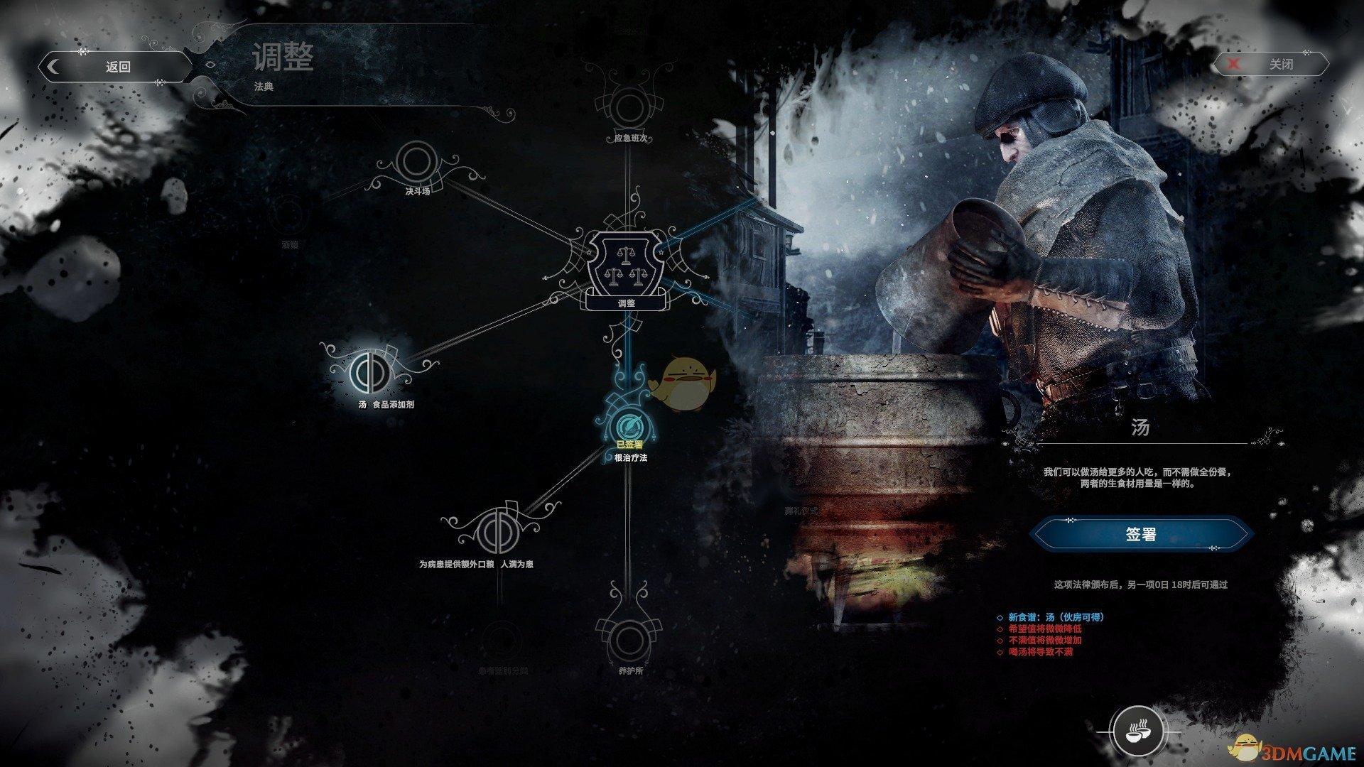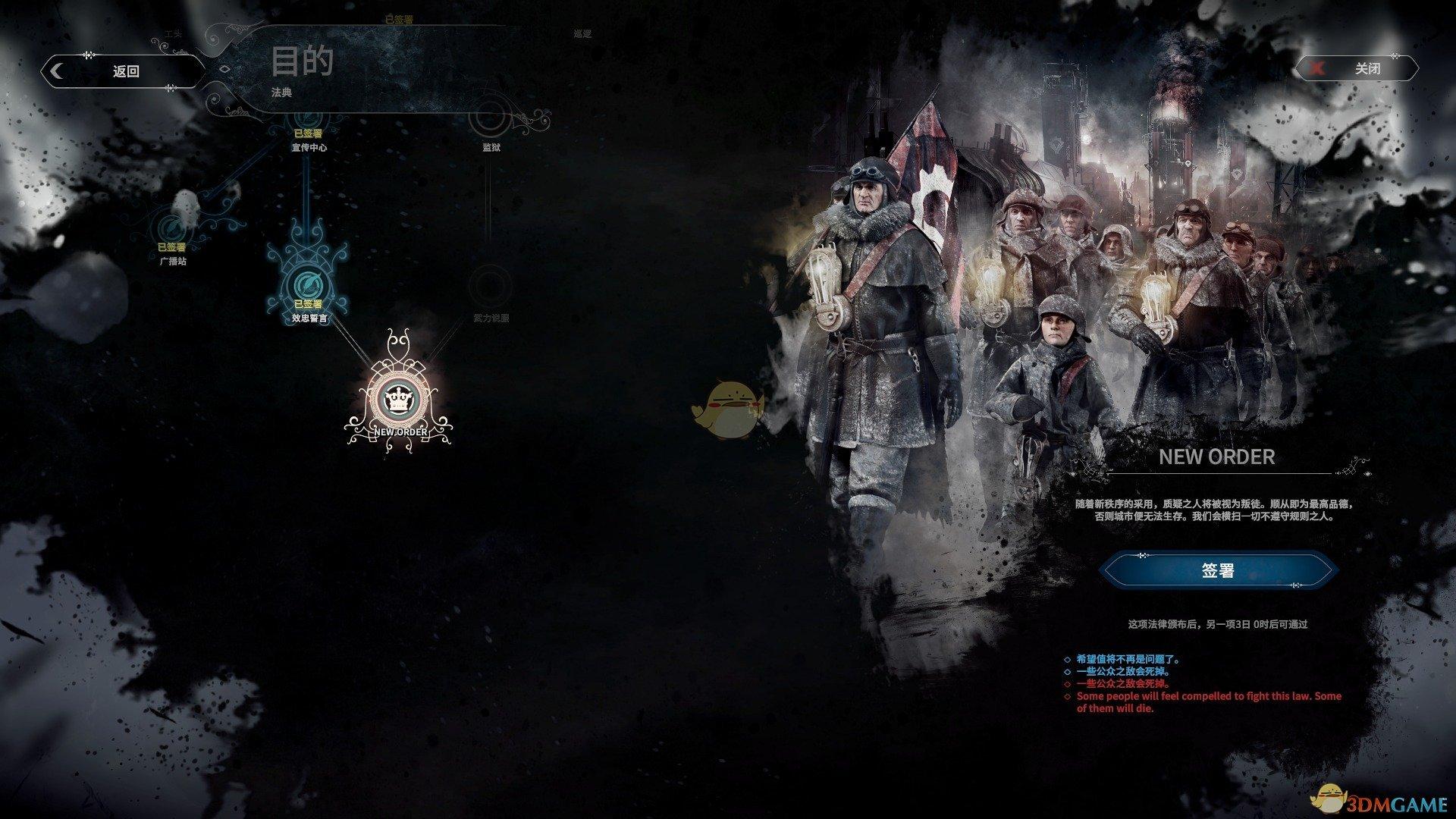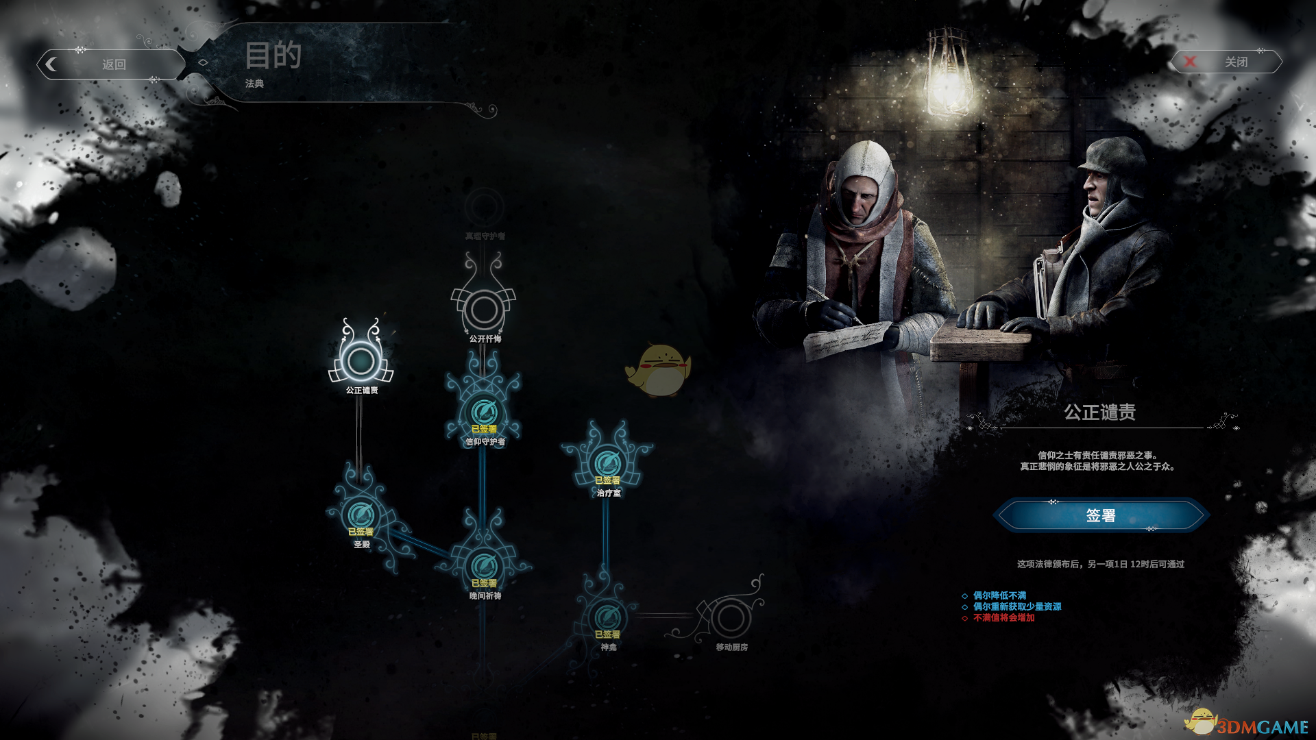 回报:开始运作后希望增加 不满减少 在签署法典次日下午2点触发剧情(13:59至少此建筑效率为20%) 选第二项得到100配给
