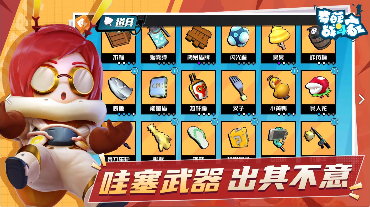 奇葩战斗家是一款以熊孩子为主角的多人联机向俯视角乱斗手游,主欢乐、搞笑、随机、互坑等套路,类“io游戏”玩法,趣味性挺足的,游戏最大的特点就是能和朋友们联机一起搞笑。几乎你看上的所有道具,都可以被用来攻击人。在这里,恶作剧是可以被允许的,聚会时最好玩的一款游戏。奇葩战斗机非常不错,你值得一玩。下面说说这款游戏到底有多奇葩和一些玩法小技巧!