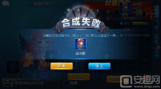 高级时装需要通过低级时装合成,具体规则是:选择两件相同品质的时装,合成后有一定几率获得更高品质的时装,失败的话两件时装就只能留下一件了。。。所以合成前一定要记得洗脸。