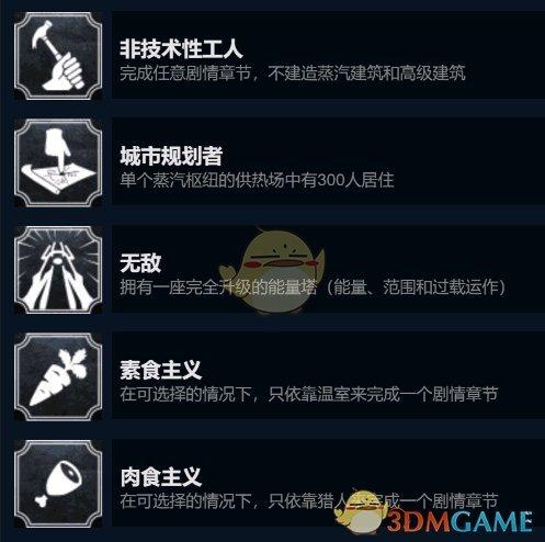 素食主义:只靠温室通关,可以使用工业温室和渔家村落/淡水温泉的前哨站,方舟由于锁猎人所以无法完成这个成就,要注意。