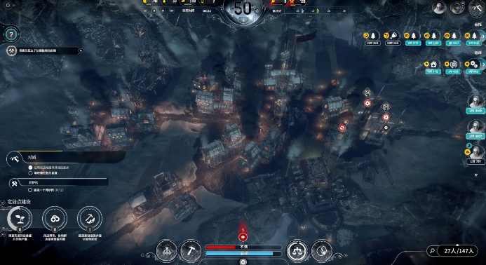 冰汽时代的故事是,当地球温度降到零下30度时,人们开始向煤炭资源丰富的北方迁移,试图靠蒸汽动力建造人类最后的城市。玩家需要在抵达的难民中安顿下来,在保证温饱、医疗、社交等人们基本生存需求的同时,协调不同利益群体之间的关系。