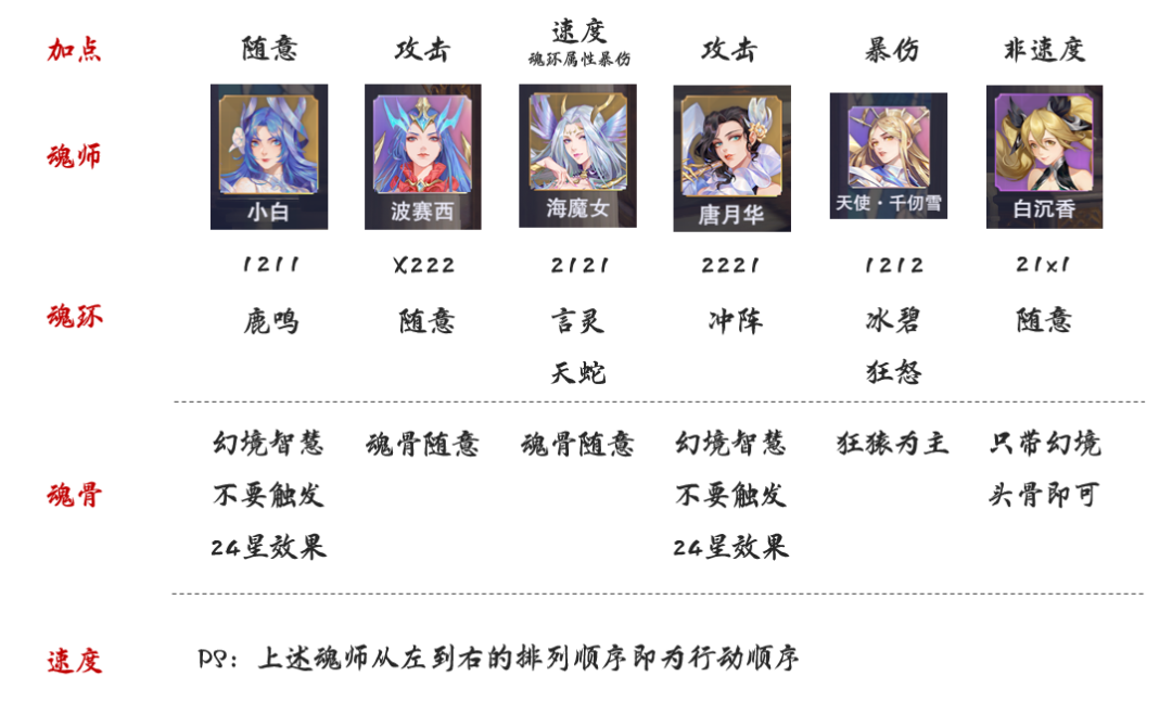 因此:想要提升我们的伤害,那就得尽量让SP千仞雪等输出魂师的每次核心技能输出都打在冰碧的增伤效果上,而考虑到冰碧的增伤又需要间隔一定的回合数,因此我们可以利用如波赛西的1-2技能或小白的1-2技能来引导SP千仞雪在回合外进行额外输出,从而保证她在回合内的技能输出都能享受到冰碧帝皇蝎的增伤效果。