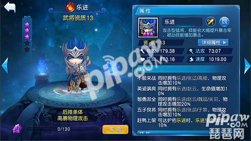 3.智勇双全。同时拥有乐进/赵云/魏延/关羽,物理攻击增加20%