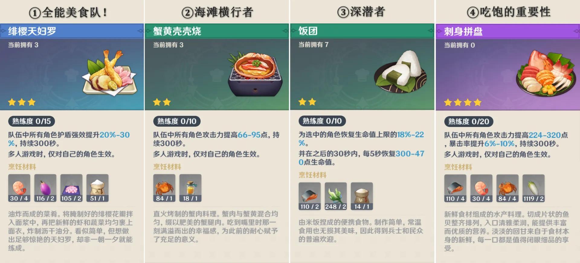 等下个版本开始应该会出一期全角色特殊料理大全~