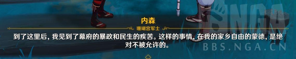 对话可以得知这是个蒙德人,因为感受到幕府暴政和民生疾苦而参加了反抗军为了自由而战。