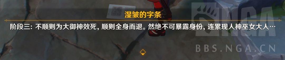 在蛇神之首附近的镇物可以发现一个湿皱的纸条。