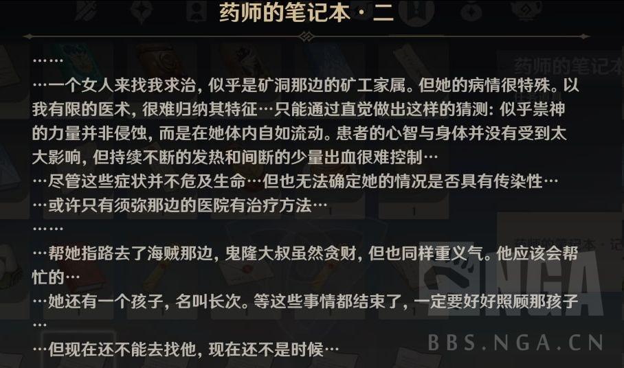 在纸条一我们可以得知,他确实没有医治的办法只能用堇瓜当作安慰剂。而联系长次的就是第二个故事了,这里我们可以注意到长次母亲的体质似乎易于常人,可以承受祟神的力量,但是并不会死去,也许在须弥可以找到医治的途径。