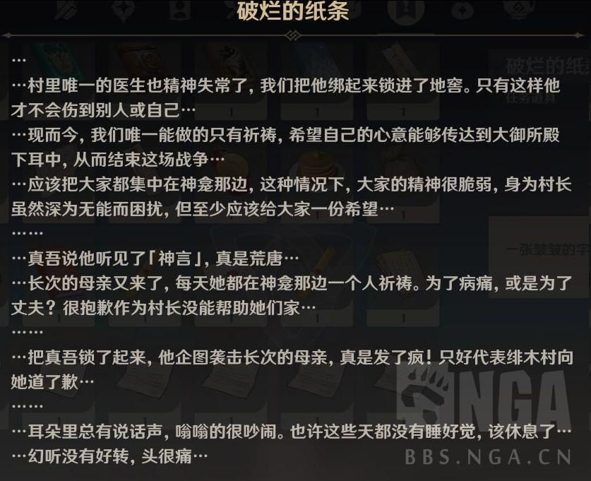 首先,在上面说的这个神龛祭拜多日之后,村长最终会发疯并且掉落以下两个纸条。
