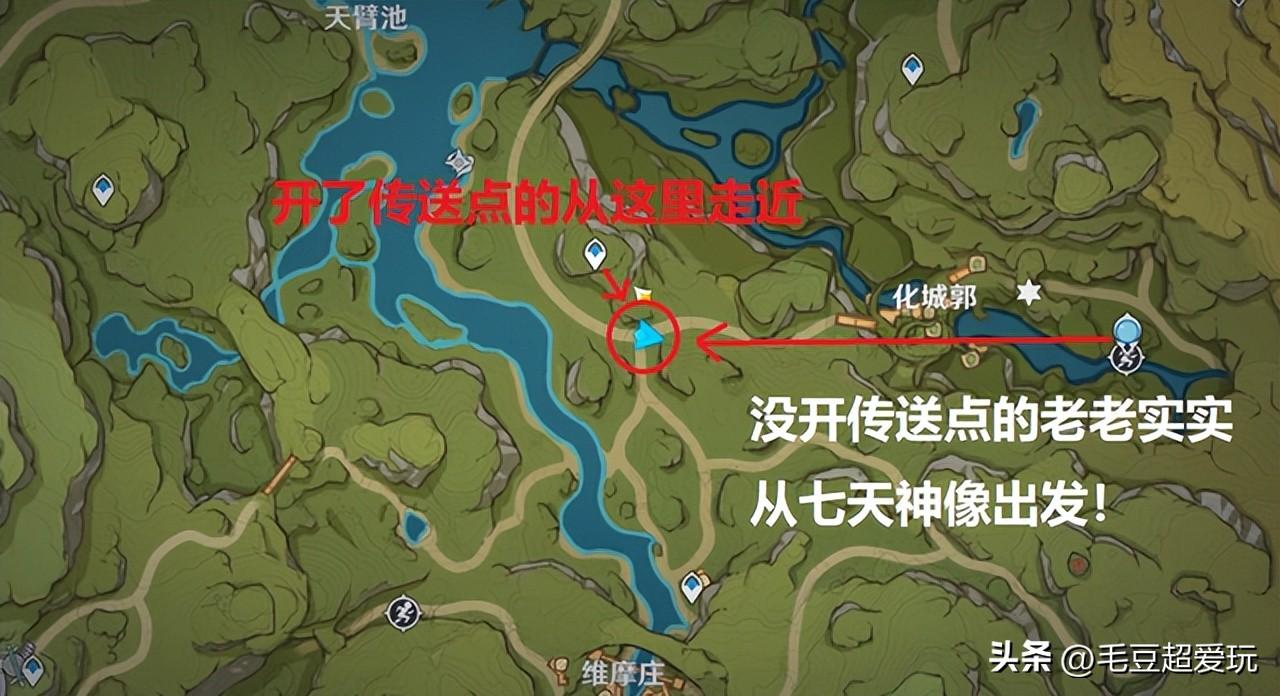 林中奇遇任务是到目的地后自动接取的,有些小伙伴们已经自动接到了任务,没有接到的旅行者跟随豆子来到下图的任务地点,开了传送点的可以抄近路,没开传动点的小伙伴就老老实实的从七天神像出发吧!