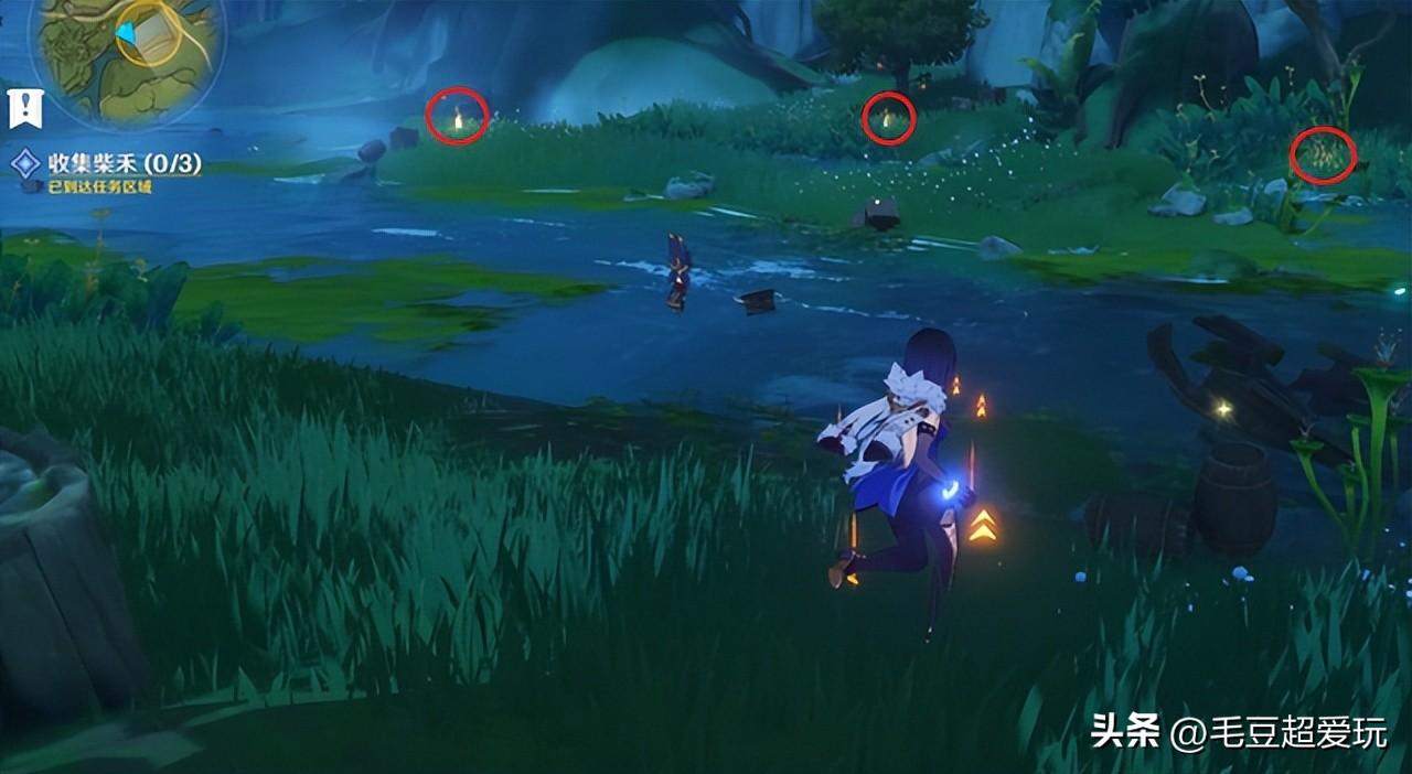 之后大家跟随任务一路前进即可,柴禾的位置豆子在图上标记出来了,找不到的小伙伴可以仔细查看周围的“亮晶晶”!