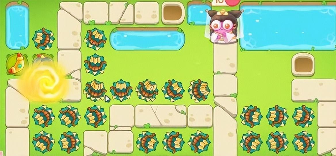 第六波会出现一只滚滚兔,血量和移速都很高,要注意集火秒掉,并且此关的兔子开始兵分两路,我们需要注意从右方洞口传送出来的兔子。