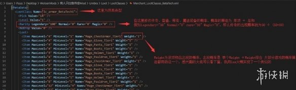 2.打开Umbra目录下的Loot / LootClasses / Merchant_LootClasses_BetaTech.xml 文件进行编辑,就可以了。