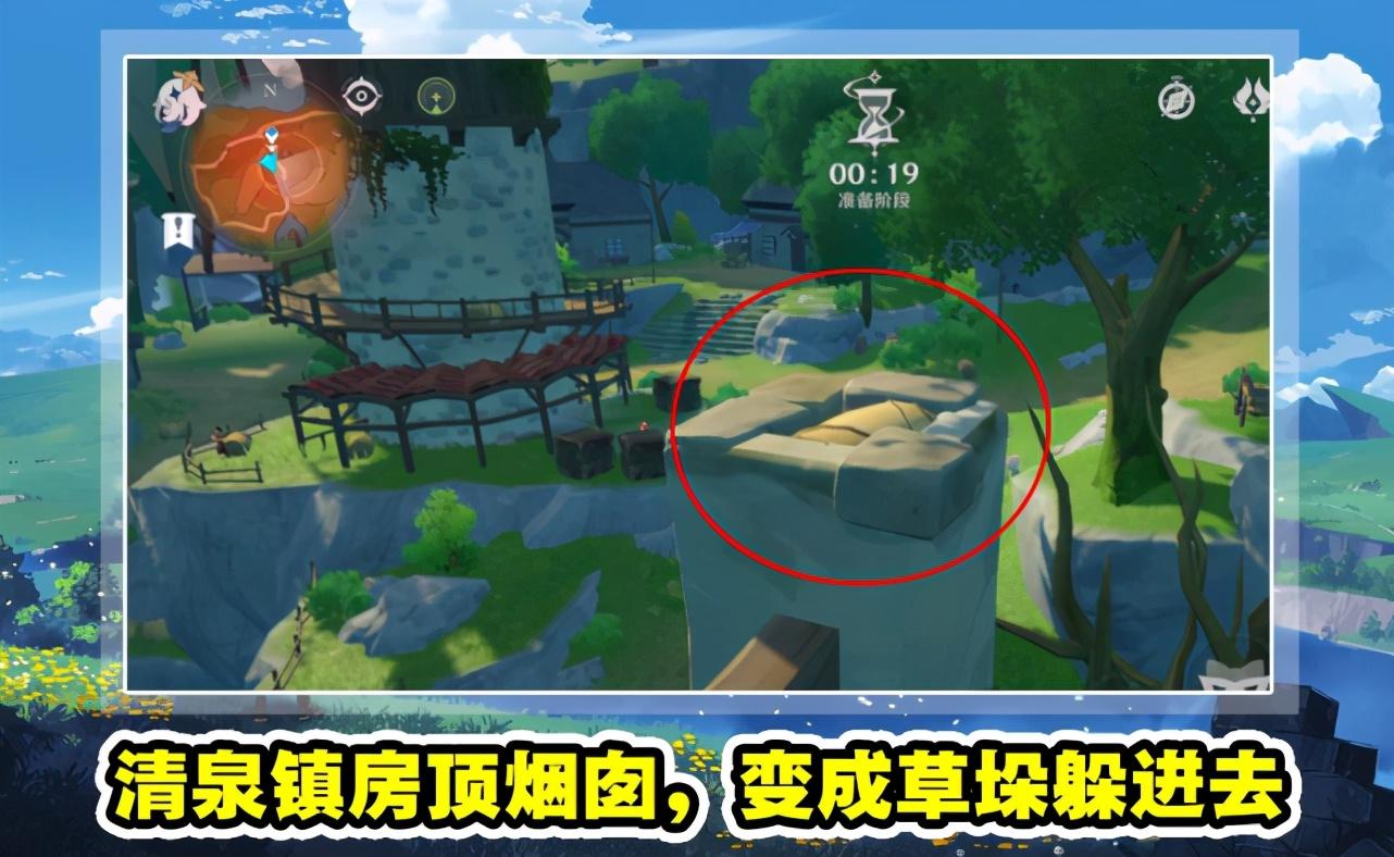 风行迷踪有多张游戏地图,其中清泉镇是对游侠玩家最有利的地图,这里不仅地形多变,高低层次不齐,而且还有不少建筑物和视野盲区,非常利于游侠玩家进行躲藏。这里我们再教大家一个清泉镇的终极躲藏地点,大家可以看上图,在清泉镇地图左侧有几座小房屋,房顶上面会有烟囱,而且烟囱是凹陷的,这时候我们可以站到烟囱凹陷处,使用E技能进行伪装,变成草垛的样子,这时候大家会发现,草垛的高度刚好和烟囱的凹陷高度相等,完美融入,站旁边都很难发现,在底下更是不可能看到。