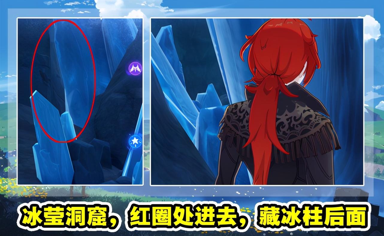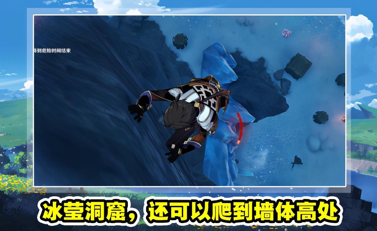 然后是冰莹洞窟地图,其实这张图游侠是很难躲藏的,因为周围全是银白色的世界,混入颜色鲜艳的角色一下子就能看出来,而且地图的场景物品非常集中,猎人只要地毯式的搜查,很容易找到游侠。但是这里也有两处地方,第一处看上图,在中心最大的冰柱后面,这里有一条窄缝,玩家可以藏进去,不容易被发现。第二处看下图,和前面爬树一样,这里我们也可以爬到墙体的高处,很多游侠根本不注意高空。