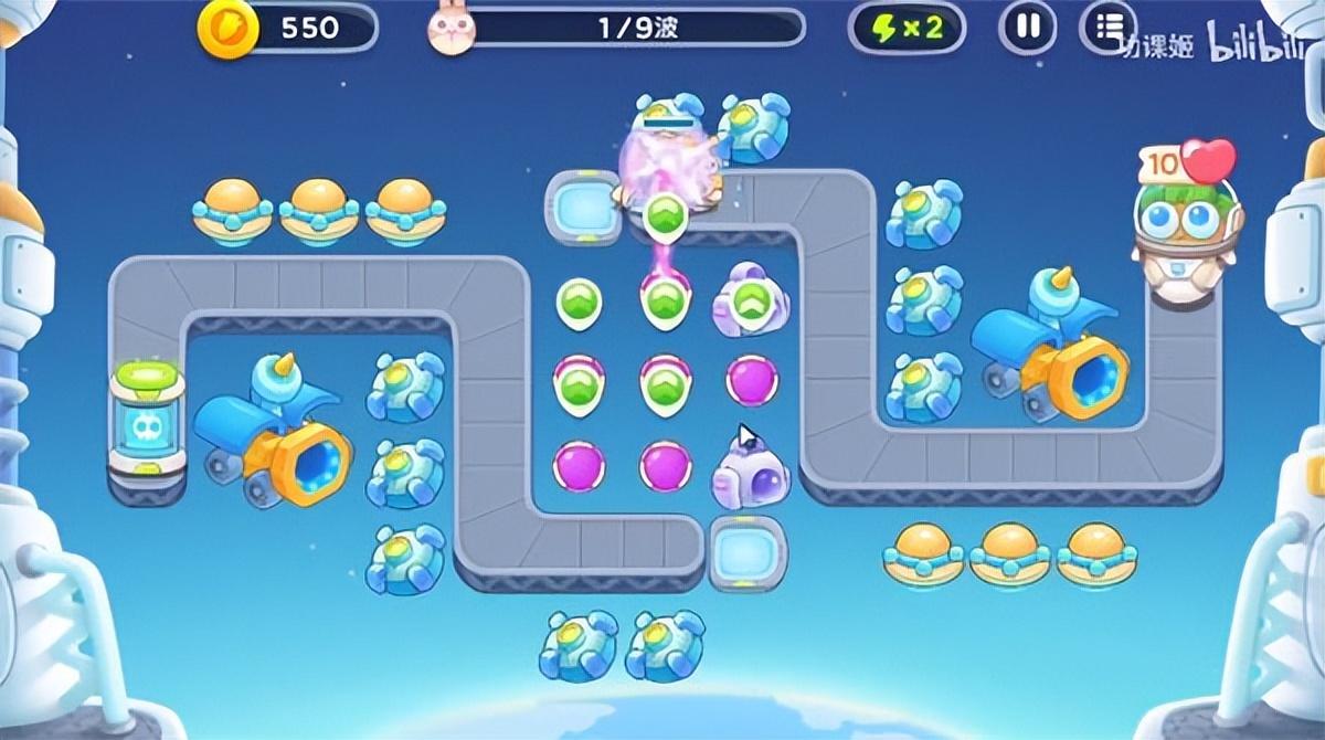 4、总结一下,这一关的主要任务是布置魔法球对兔子造成大量的伤害,同时负责前期的开荒,另一个大主力就是导弹炮,用来对付空中的目标。