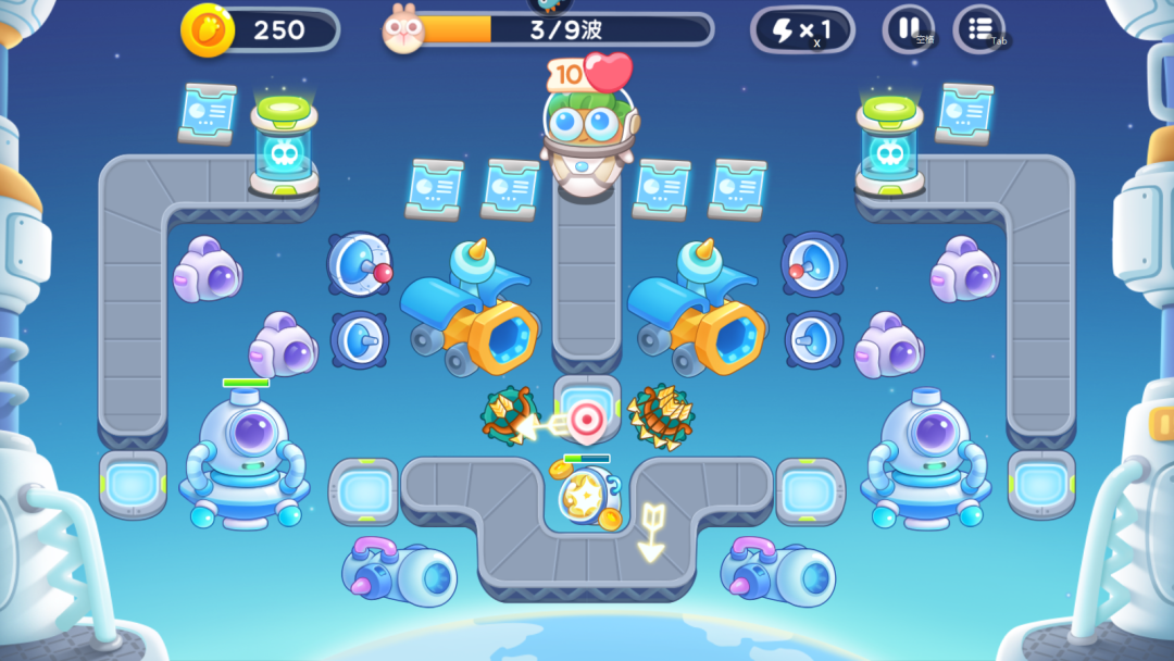 后续几波多建造星星塔和导弹塔,巡航兔死后会分裂成3个速度很快的探测兔,容易被冲破防线。星星塔可以同时攻击多个飞行目标。