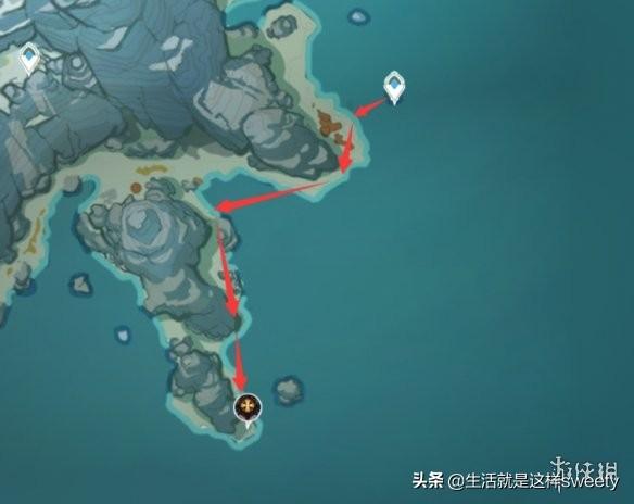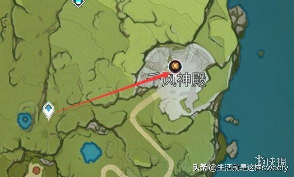 蒙德—时风岛(此位置需要从摘星崖飞过去,路途遥远,请记得提前准备恢复体力的/减少体力消耗食物)