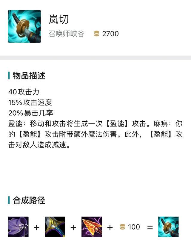 现在版本已经很少有ADC会出这件装备了,除了女警!在Uzi的理解中,岚切这件道具不仅能够提供重组的攻击力加成,还有攻速已经暴击几率的提升,这对女警这样的英雄来说简直就是契合度拉满!