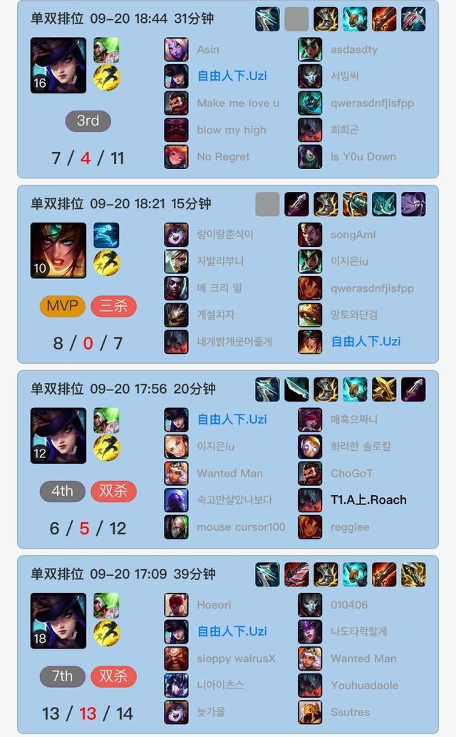 如图所示,Uzi就使用女警这个英雄,最近几天上了一波大分!大体上看了一下Uzi的女警,在韩服12.18版本胜率已经来到了80%以上!这个英雄突然火起来了,离不开两方面的原因,第一就是前面几个版本强势的ADC们都得到了或多或少的调整,第二就是关于女警的新玩法被开发出来了~