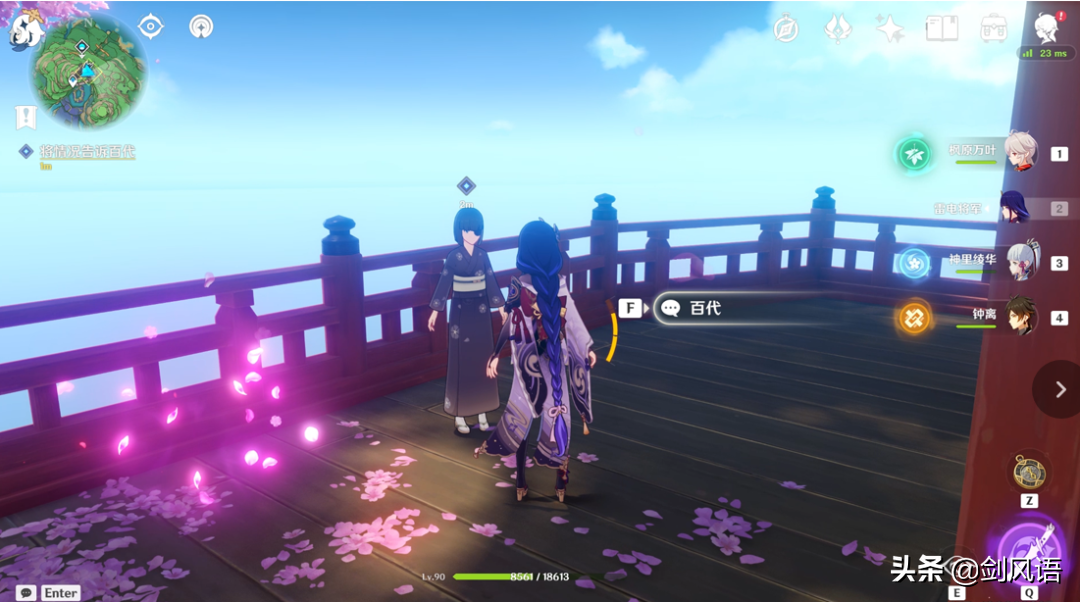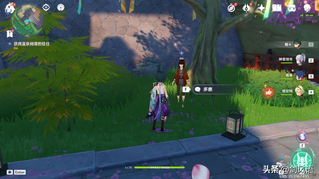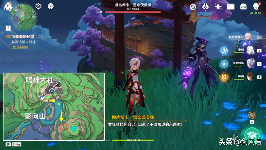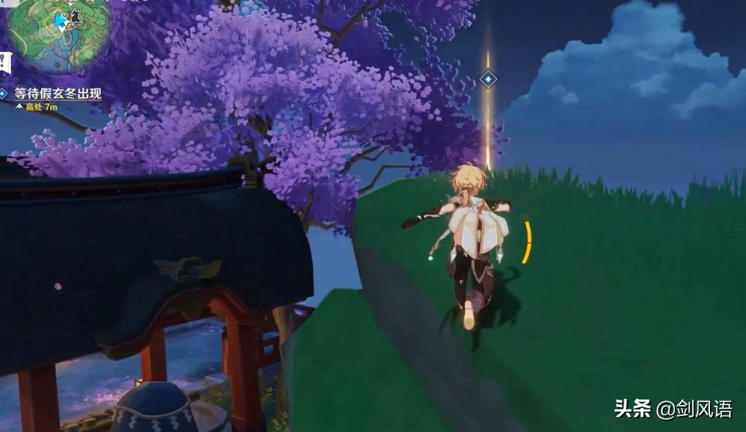 2.等待假玄冬出现,游戏内将时间调整21~23点之间,在鸣神大社传送点旁边,就看到玄冬林檎出现了。