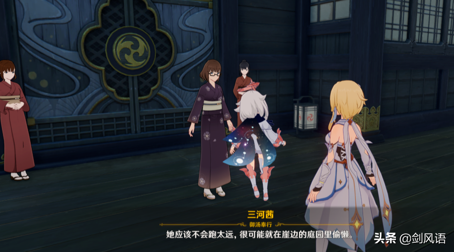 第三个间谍【多惠】,找这个间谍我们需要先到御汤奉行,和三河茜对话打听多惠消息。