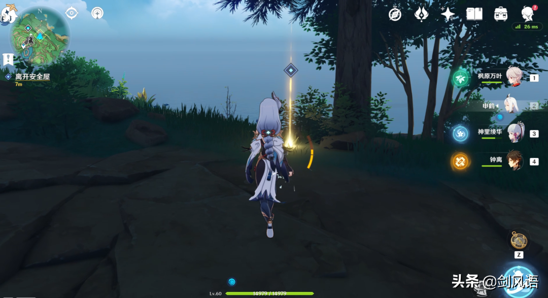 3.用元素视野追踪假玄冬,一路跟下山,然后后看到对面平台处的浮空石,拿到雷种子飞过去,靠近后会自动触发剧情。